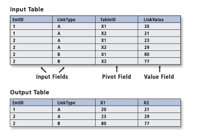 This tool works just like it does in Excel – we can reorganise the table and “flatten” this many-to-one relationship. This image from the help file may help: