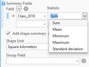 Under the Summary Fields, the tool only recognises the number fields. In the case of these data, I can make this work by setting the field to Class_2018 and the Statistic to Sum: